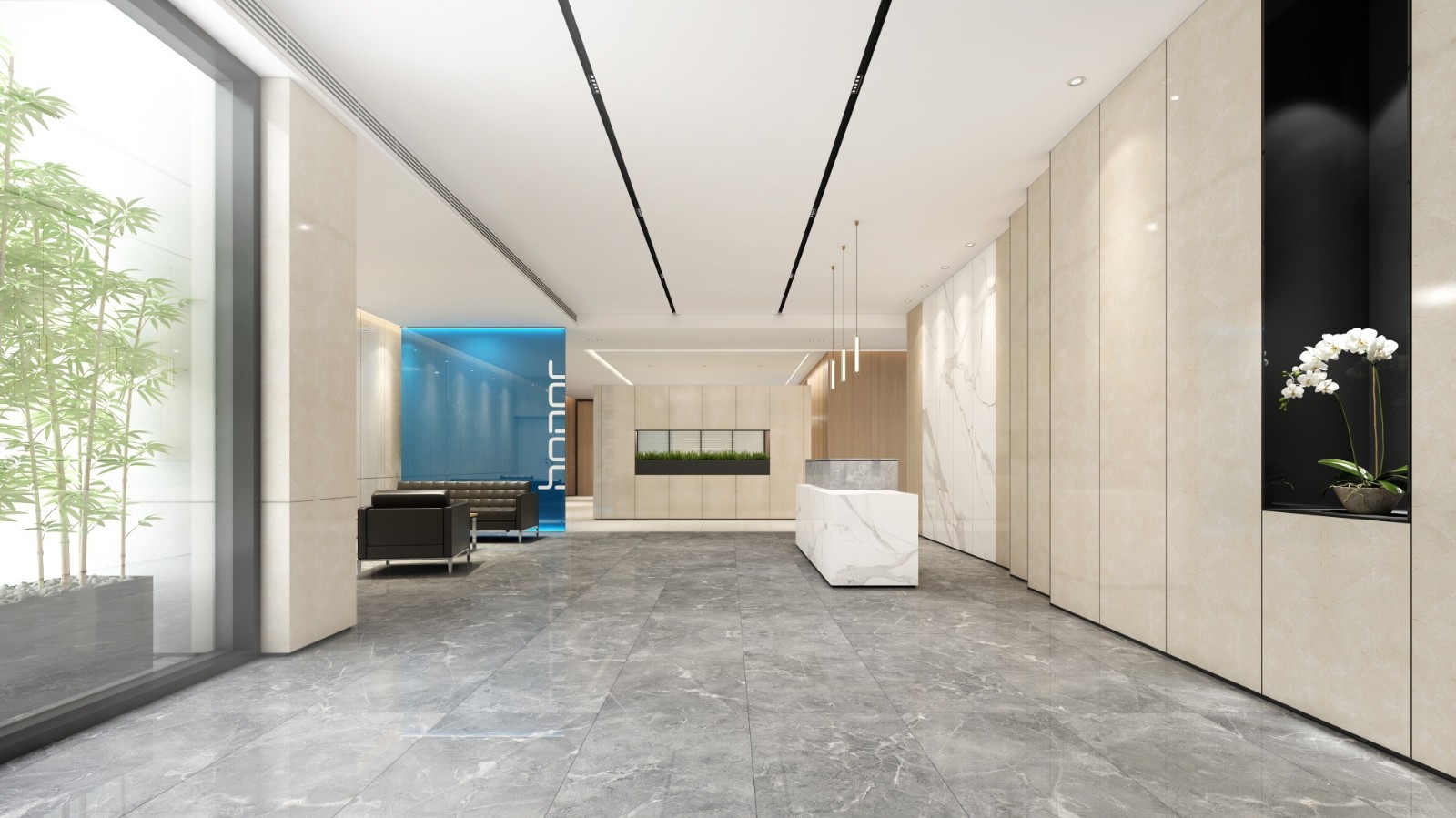 ? ?接待區(qū)的大廳要體現(xiàn)出企業(yè)大氣、明快的氛圍,對此,設(shè)計(jì)師們在規(guī)劃屏風(fēng)隔斷時(shí)選用了玻璃的透明元素,并在墻體間保留了一定的靈活空間,實(shí)體墻面由層次分明、錯落有致的線條勾畫,并在室外配備綠植越過透明的玻璃,與室內(nèi)的盆栽相呼應(yīng),組合成了簡潔、雅致的前廳。